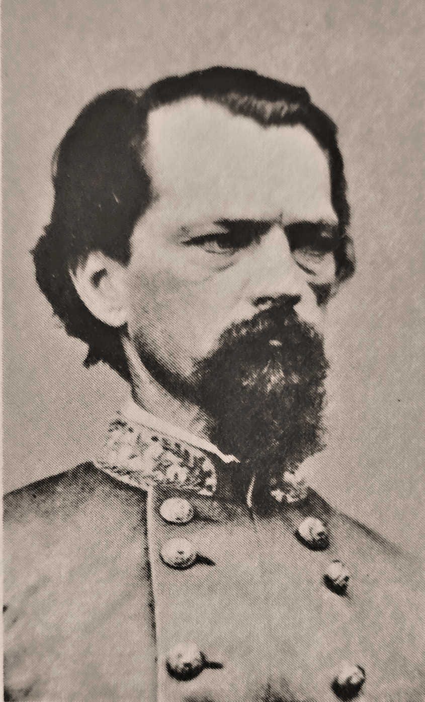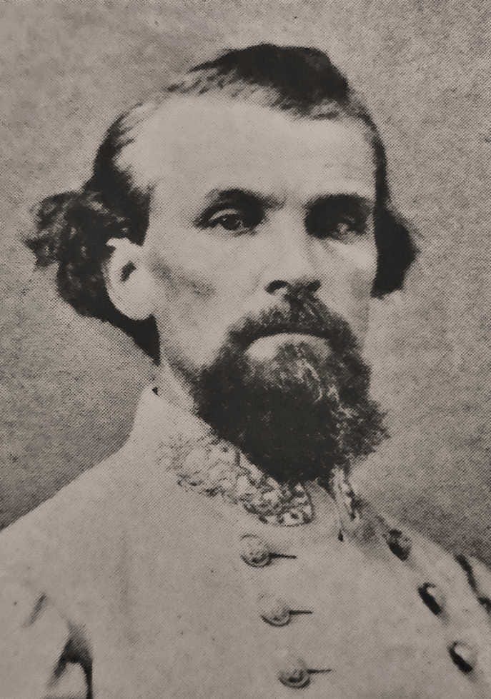 Born in middle Tennessee, July 13, 1821, the eldest son of William Forrest, a blacksmith, Nathan Forrest, moved to Mississippi with his parents in 1834. When William Forrest died three years later, the fifteen-year-old Nathan took over the support of his widowed mother, five brothers and three sisters. By diligent application and good management as a laborer, livestock dealer, slave trader and planter, he rose from poverty to great wealth. In 1849 he moved to Memphis; nine years later he became an alderman there. When Tennessee seceded, he was nearly forty years old, but he promptly enlisted as a private, along with his brother, Jeffery, and Nathan’s fifteen-year-old son, William. Within a month he was authorized to raise a battalion of calvary; and in October 1861, he became lieutenant colonel of this organization. After narrowly escaping capture at Fort Donelson and receiving a serious wound at Shiloh, he was promoted to brigadier in July 1862. He then began to develop the type of operation that was to become his specialty—moving with lightning speed deep into enemy territory, surprising the enemy, striking furiously, wreaking destruction, and then moving on before the victims could recover their balance.