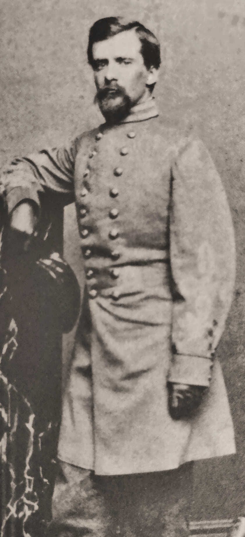 Other outstanding brigade commanders, to mention only a few, were Daniel C. Govan, Archibald Gracie, Cadmus Wilcox, Bryan Grimes, States Rights Gist, and John Pegram. The handsome and gallant Pegram was given command of a division after Rode’s death at Winchester, September 19, 1864, but did not live long enough to receive a major generalcy. At Hatcher’s Run, February 6, 1865, three weeks after his thirty-third birthday and his marriage to the beautiful Hetty Cary, a Federal bullet pierced his breast and killed him. Four days before his death, bride and groom were riding at a review held in her honor when her horse brushed against a soldier. She reined up and started to apologize. But when the Reb looked up into her lovely face he broke in to say: “Never mind, Miss! You might have rid all over me, indeed you might.”